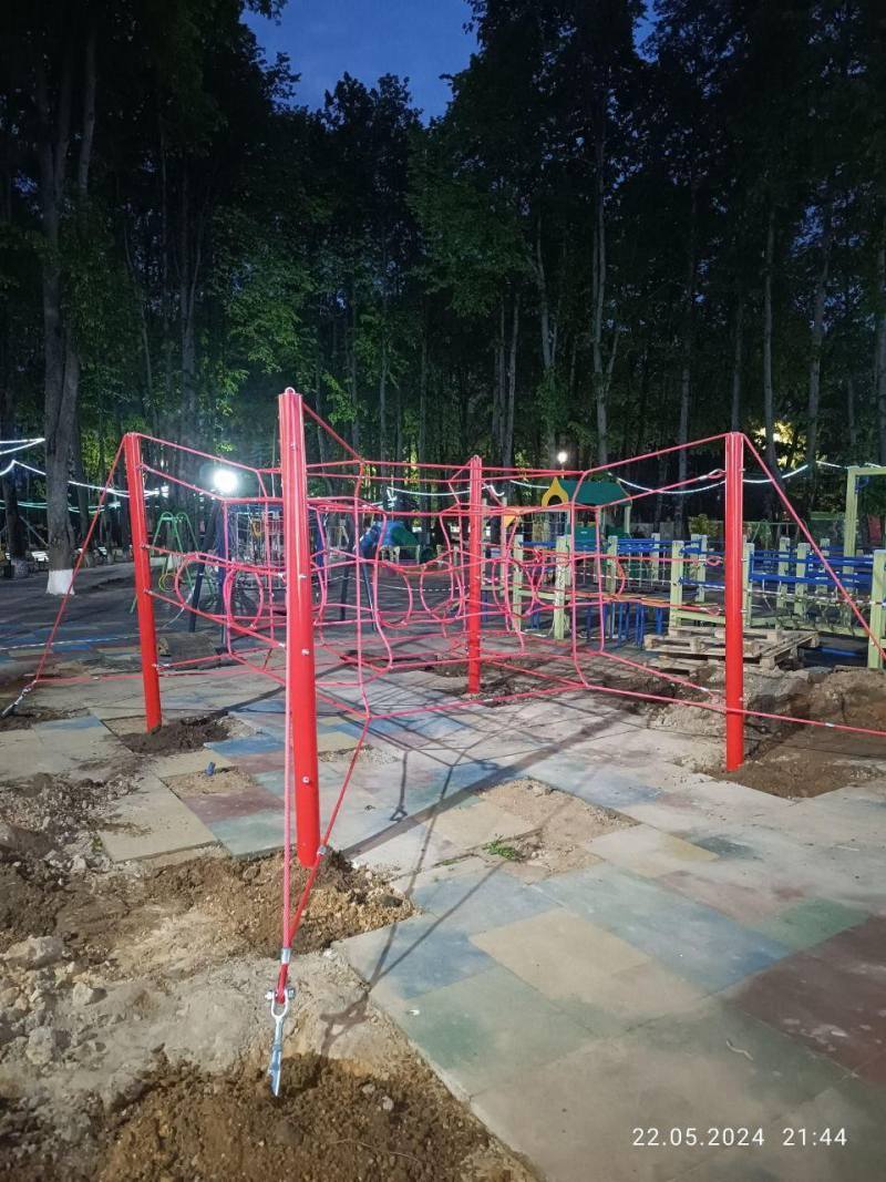 Установлен канатный игровой комплекс на детской площадке 2024